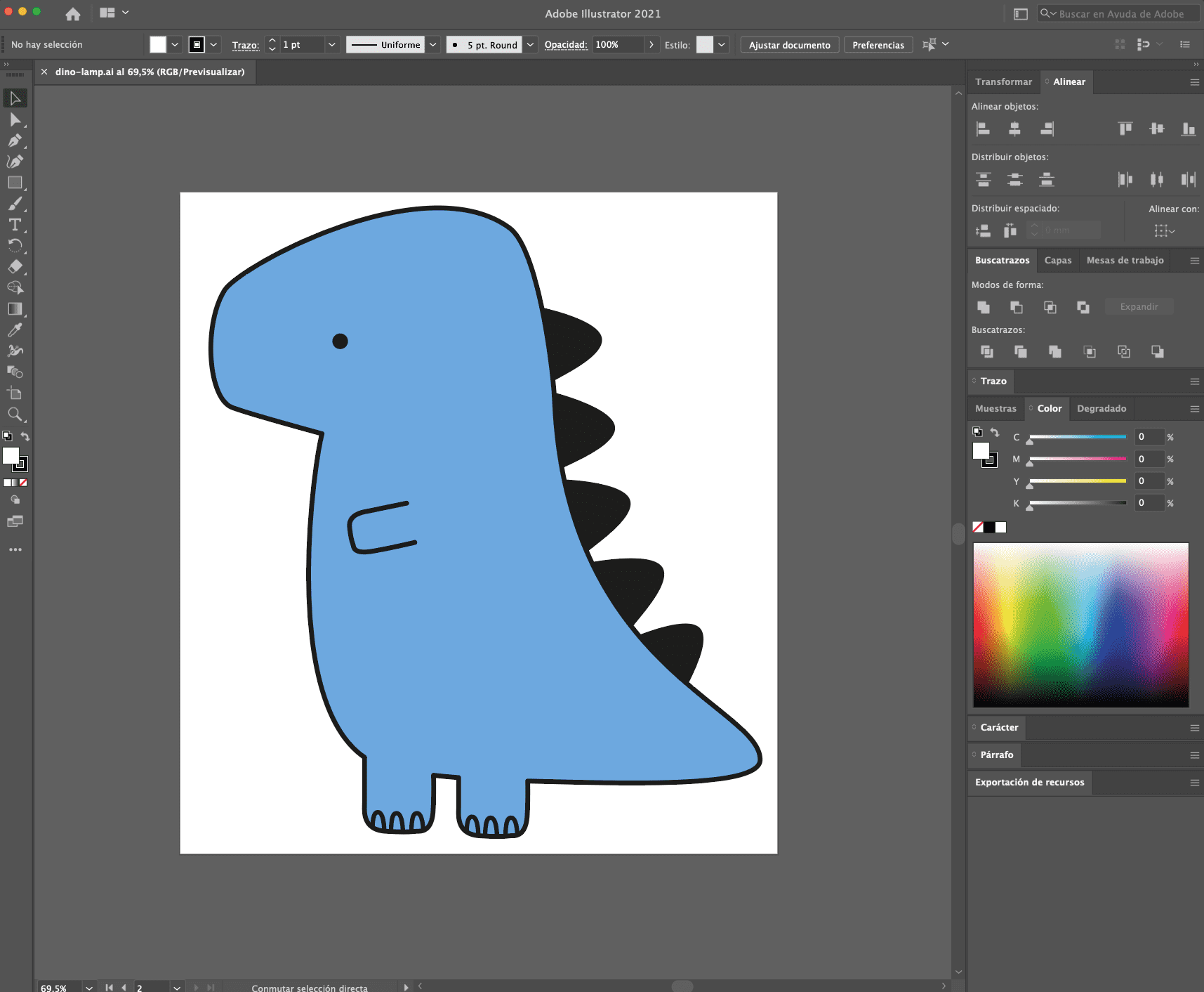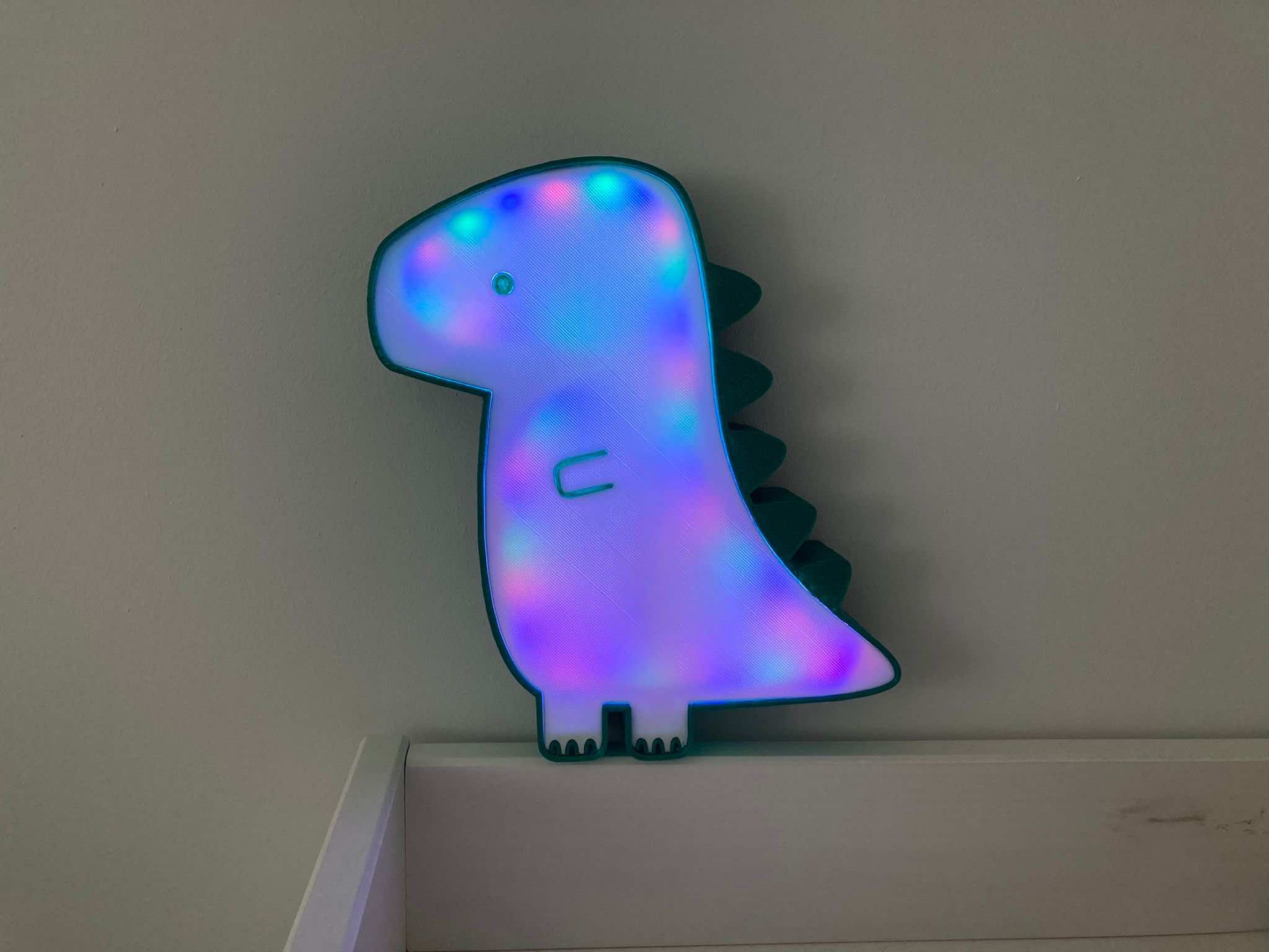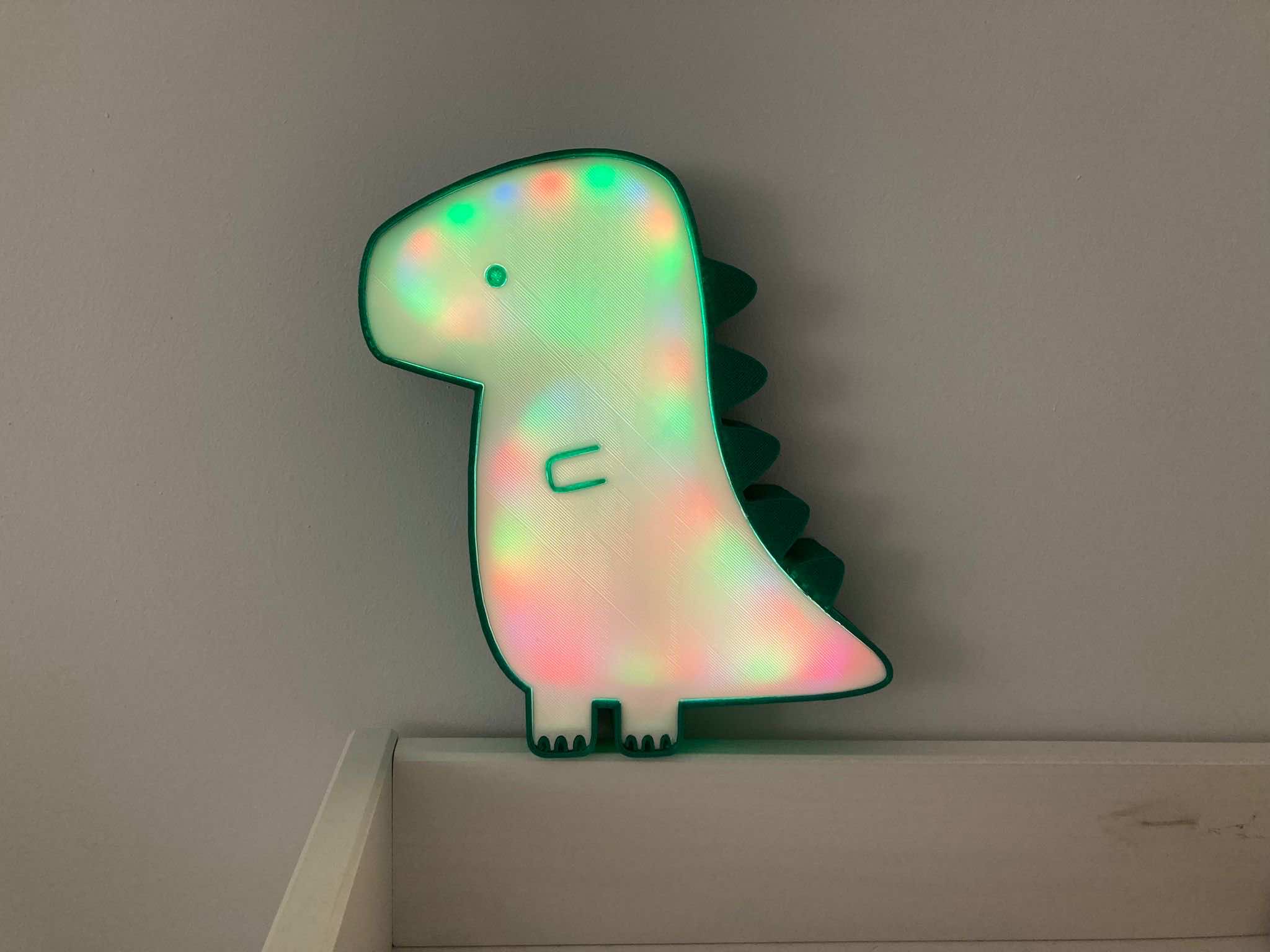 Ella dibujó el dinosaurio en illustrator y a partir de ahí hice el modelo 3D en diferentes partes para integrar los leds dentro del objeto.