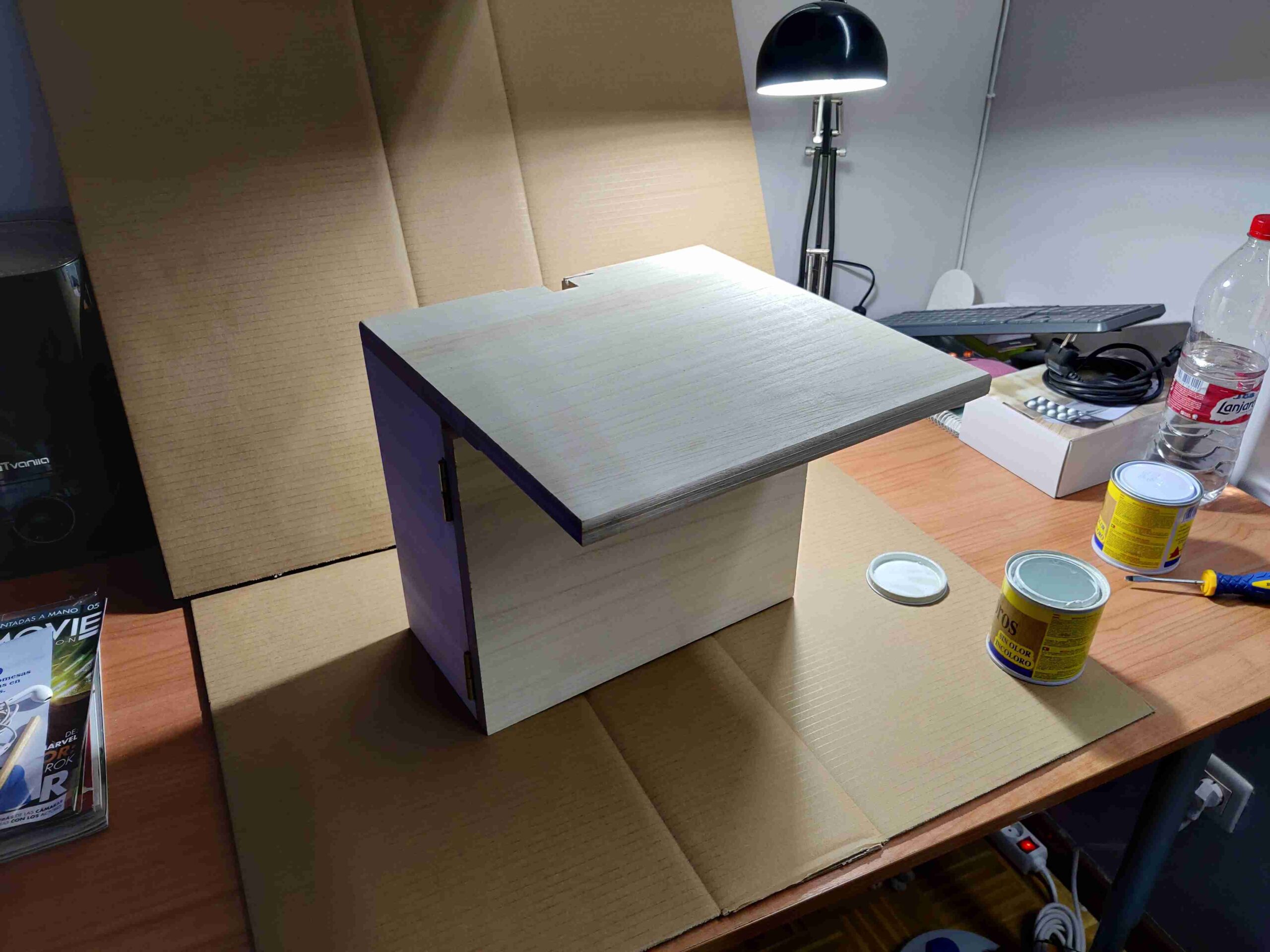 Diseñar una estructura a medida para soportar la consola. El monitor va a de forma independiente anclado a la pared. De esta forma se ahorra mucho espacio.