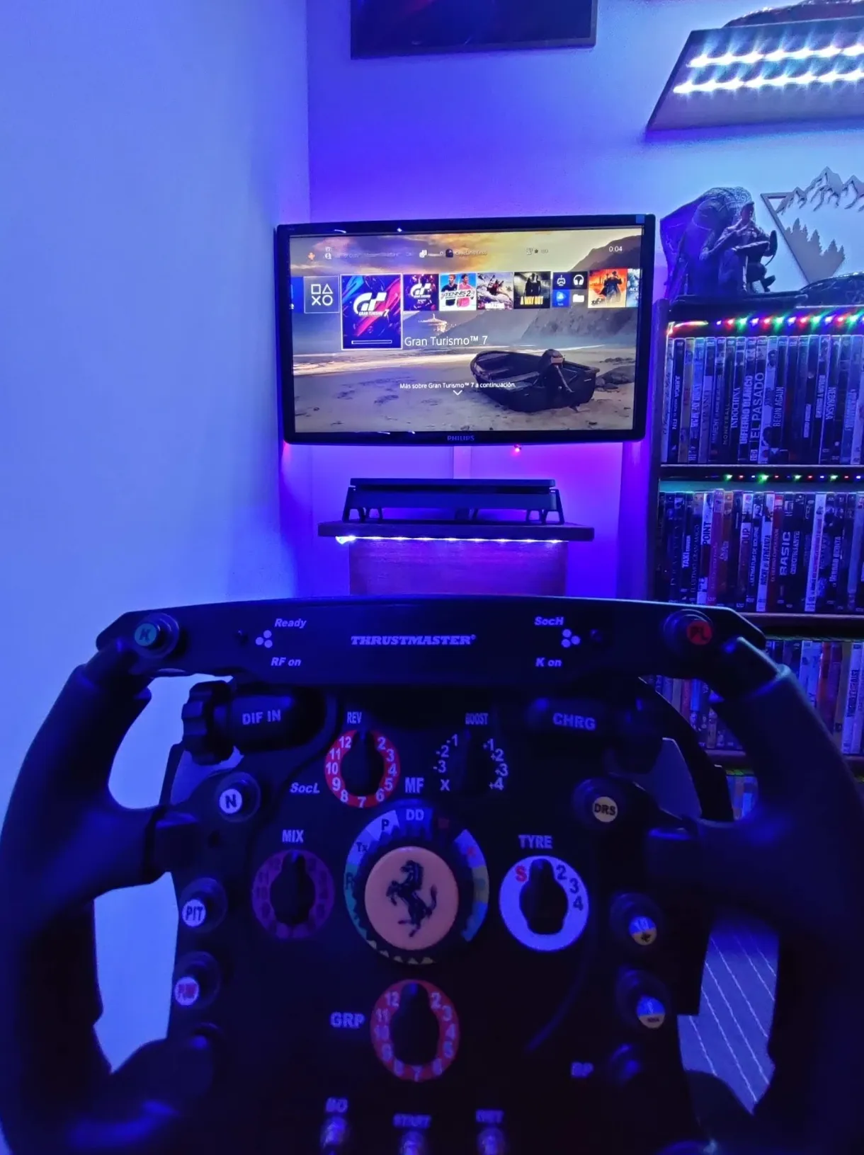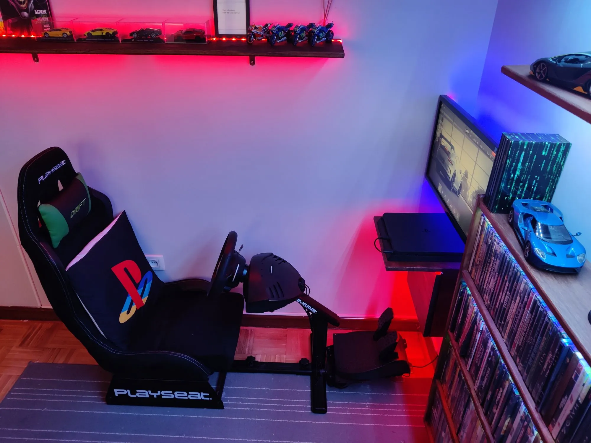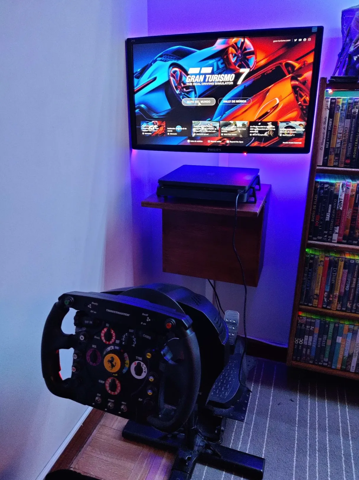 La primera aproximación del simulador era un armatoste que sostenia la pantalla y la consola. Ocupaba mucho espacio y estéticamente no encajaba en la habitación.