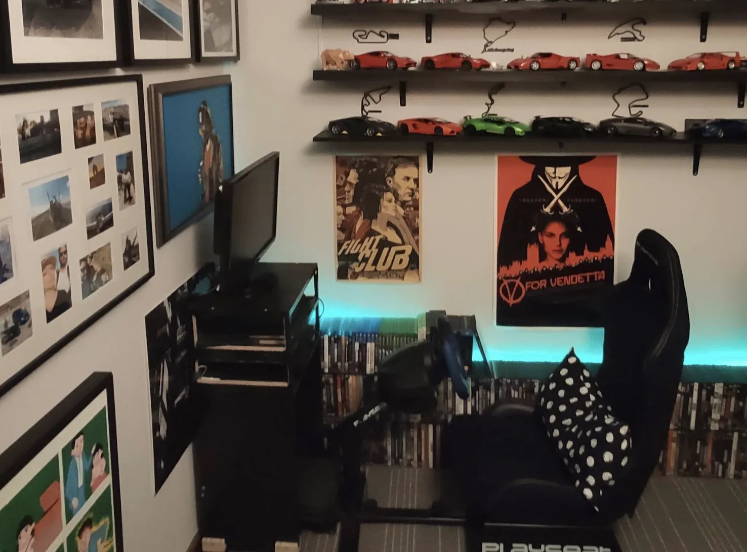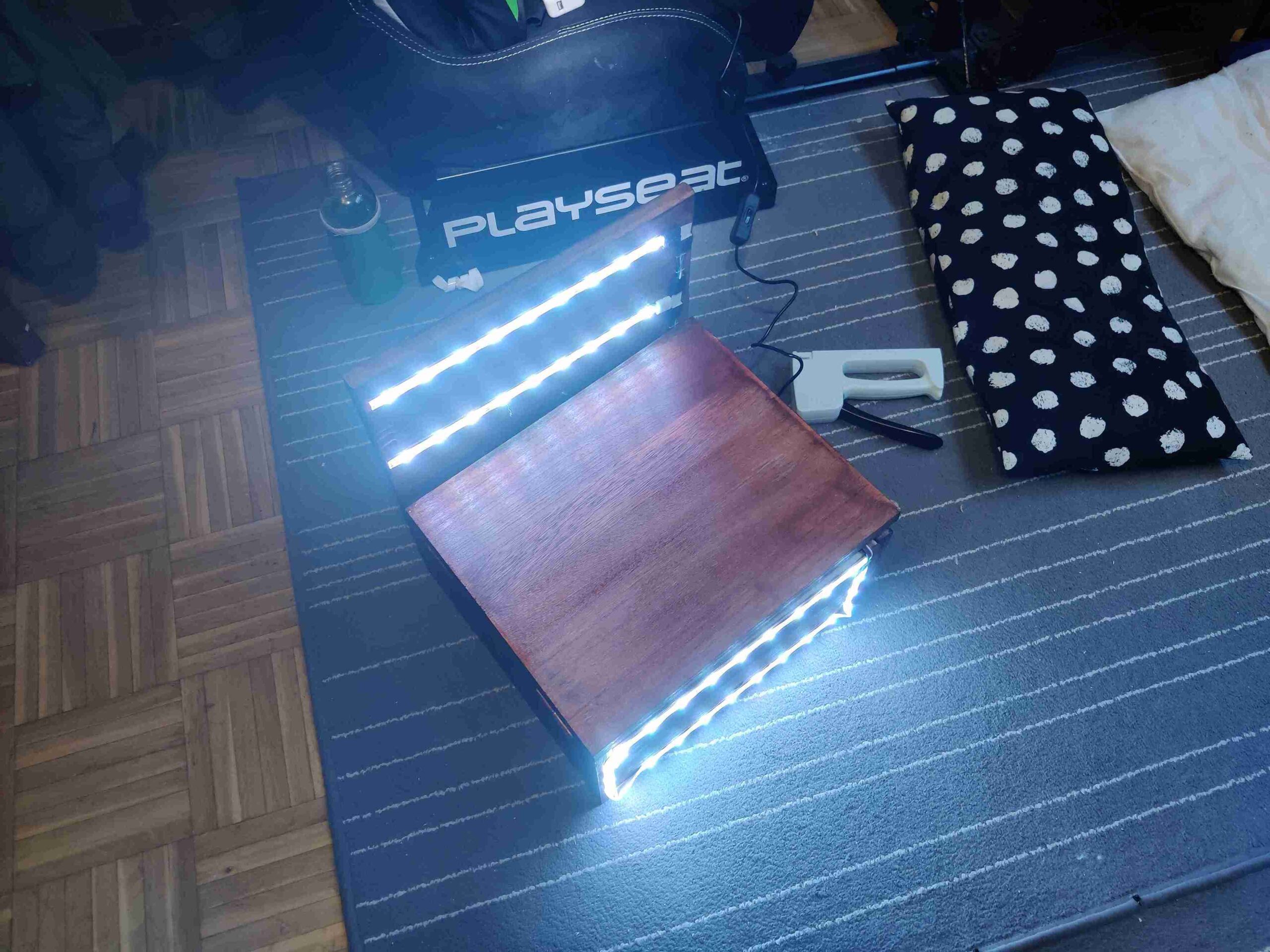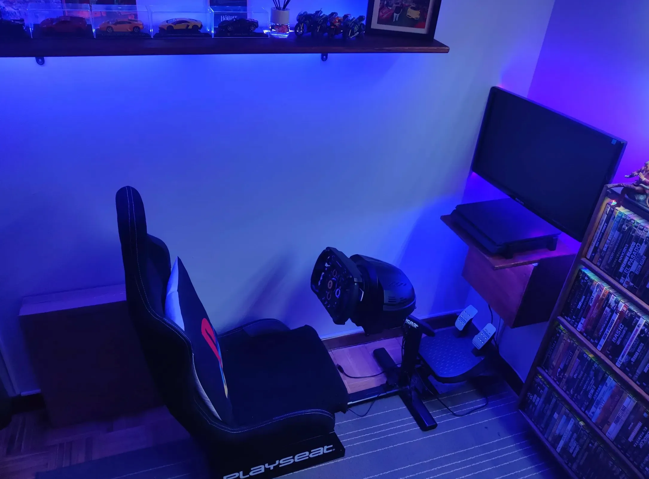 La primera aproximación del simulador era un armatoste que sostenia la pantalla y la consola. Ocupaba mucho espacio y estéticamente no encajaba en la habitación.